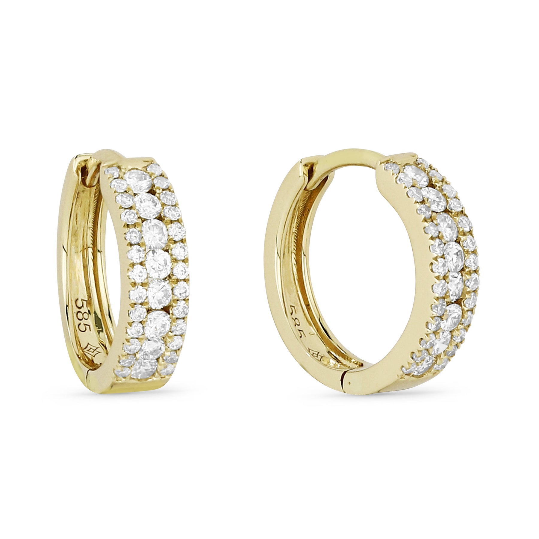 Beautiful Hand Crafted 14K Yellow Gold White Diamond Milano Collection Hoop Earrings With A Hoop Closure
