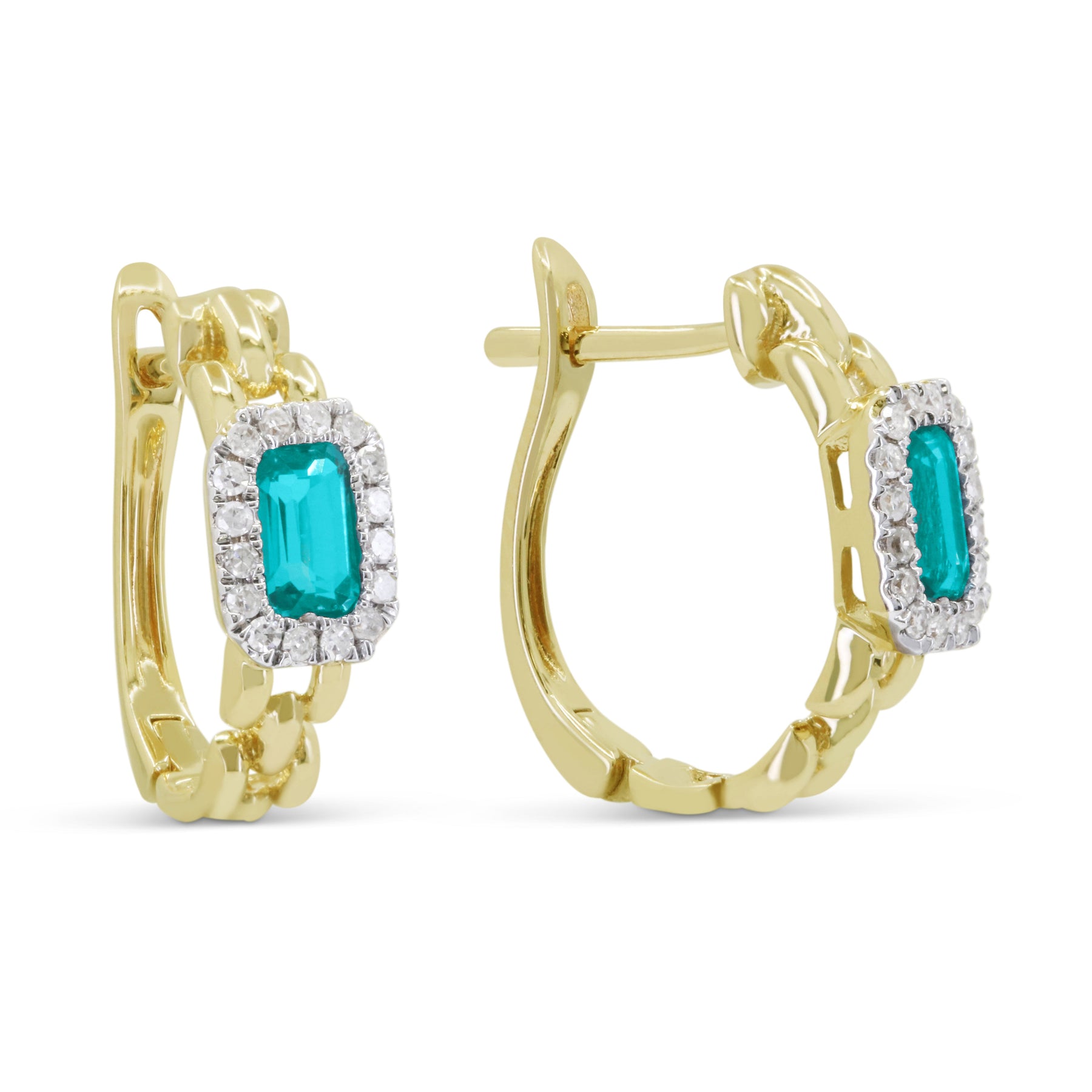 Beautiful Hand Crafted 14K Yellow Gold 3X5MM Created Tourmaline Paraiba And Diamond Essentials Collection Hoop Earrings With A Hoop Closure