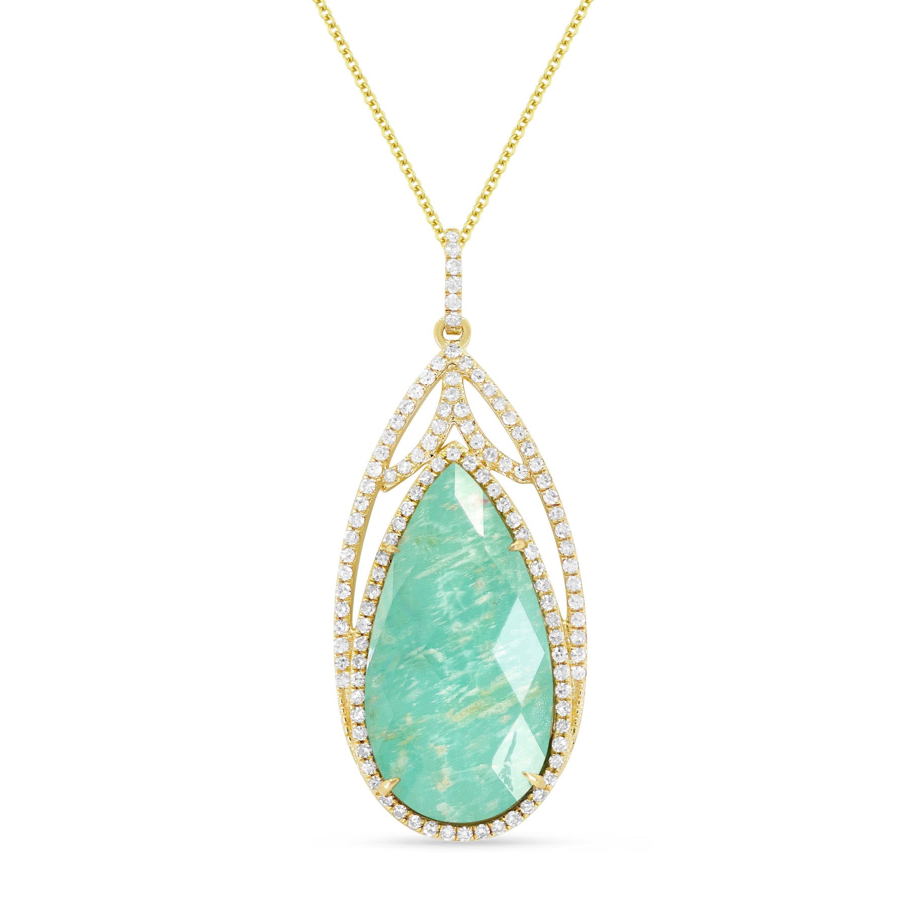 N1622AMZQUY 14K Yellow Gold Essentials Collection Amazonite And Diamond Pendant