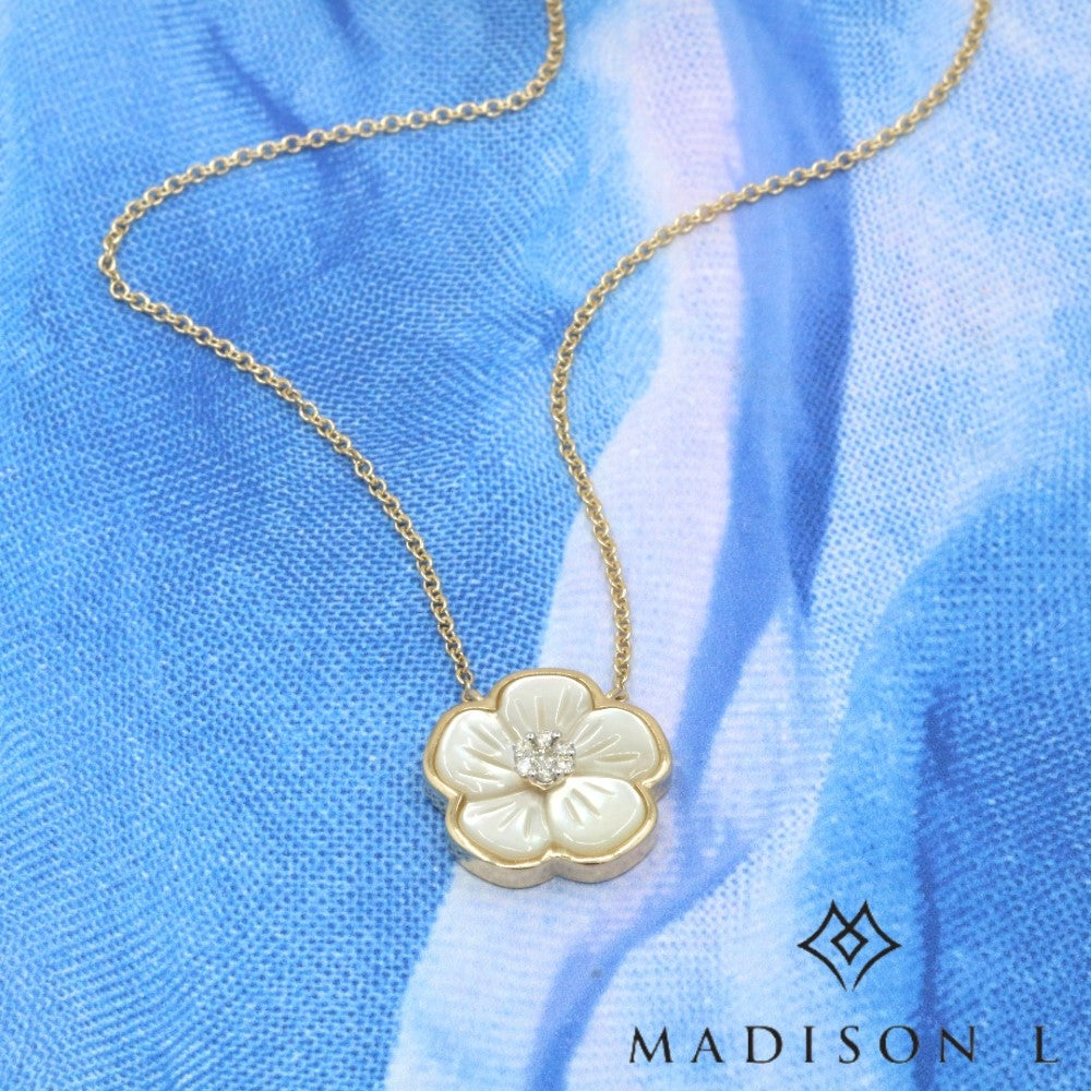 Crafted in solid 14K gold, this Madison L Jewelry Essentials Collection necklace featuring a Flower motif is designed to layer beautifully or stand alone with timeless appeal.