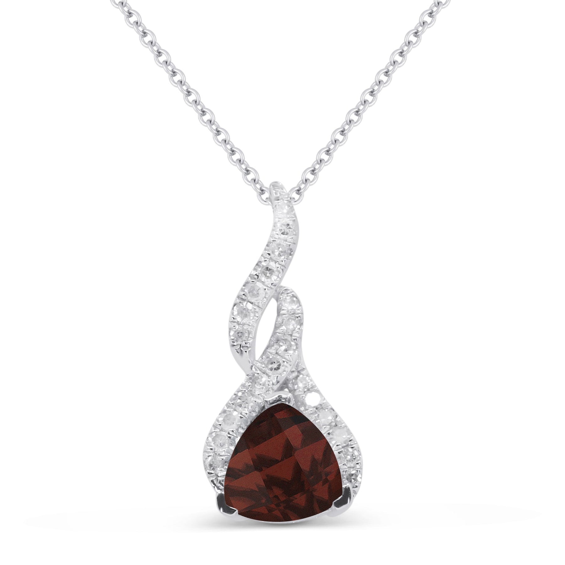 Beautiful Hand Crafted 14K White Gold 6MM Garnet And Diamond Essentials Collection Pendant