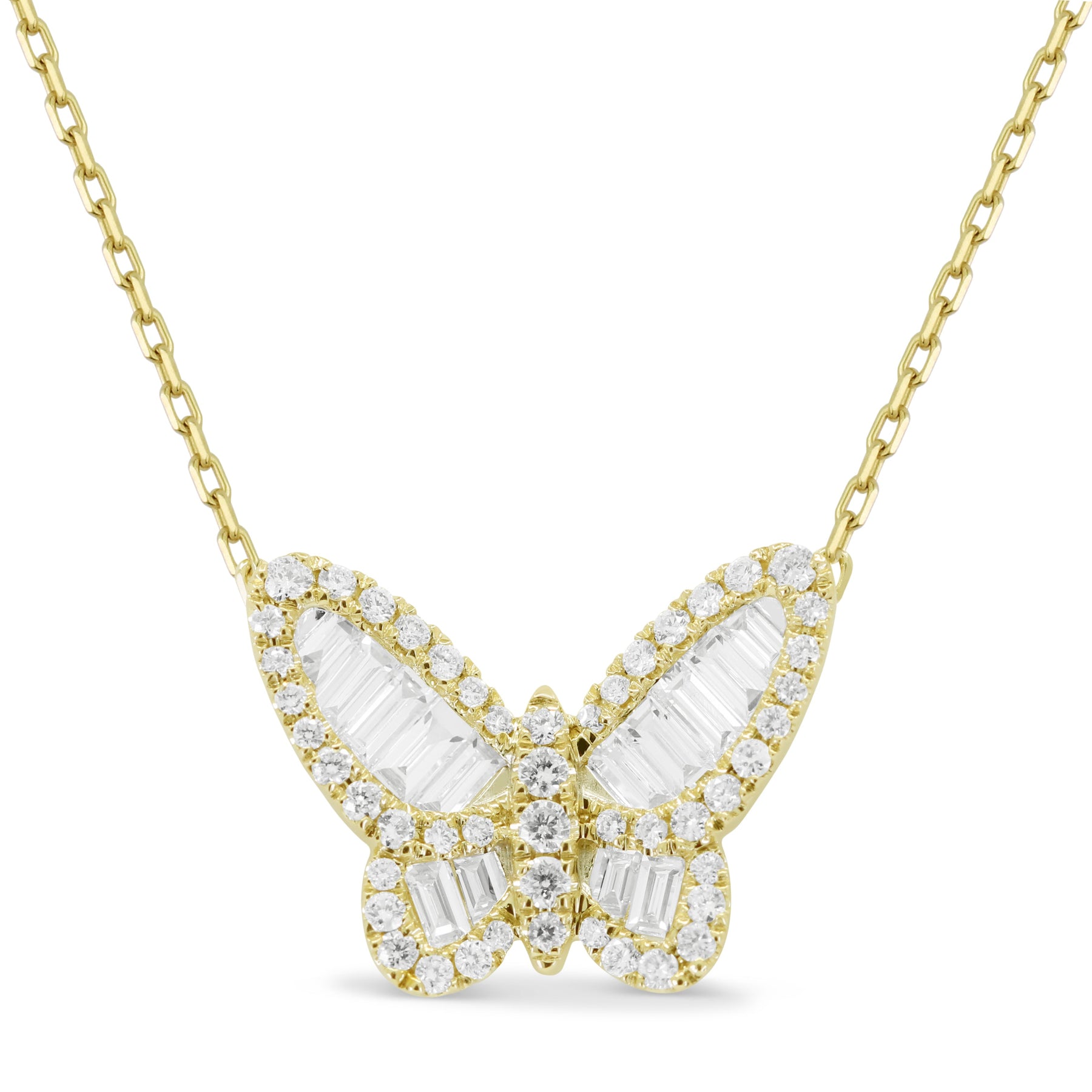 Crafted in solid 14K gold, this Madison L Jewelry Milano Collection necklace featuring a Butterfly motif is designed to layer beautifully or stand alone with timeless appeal.
