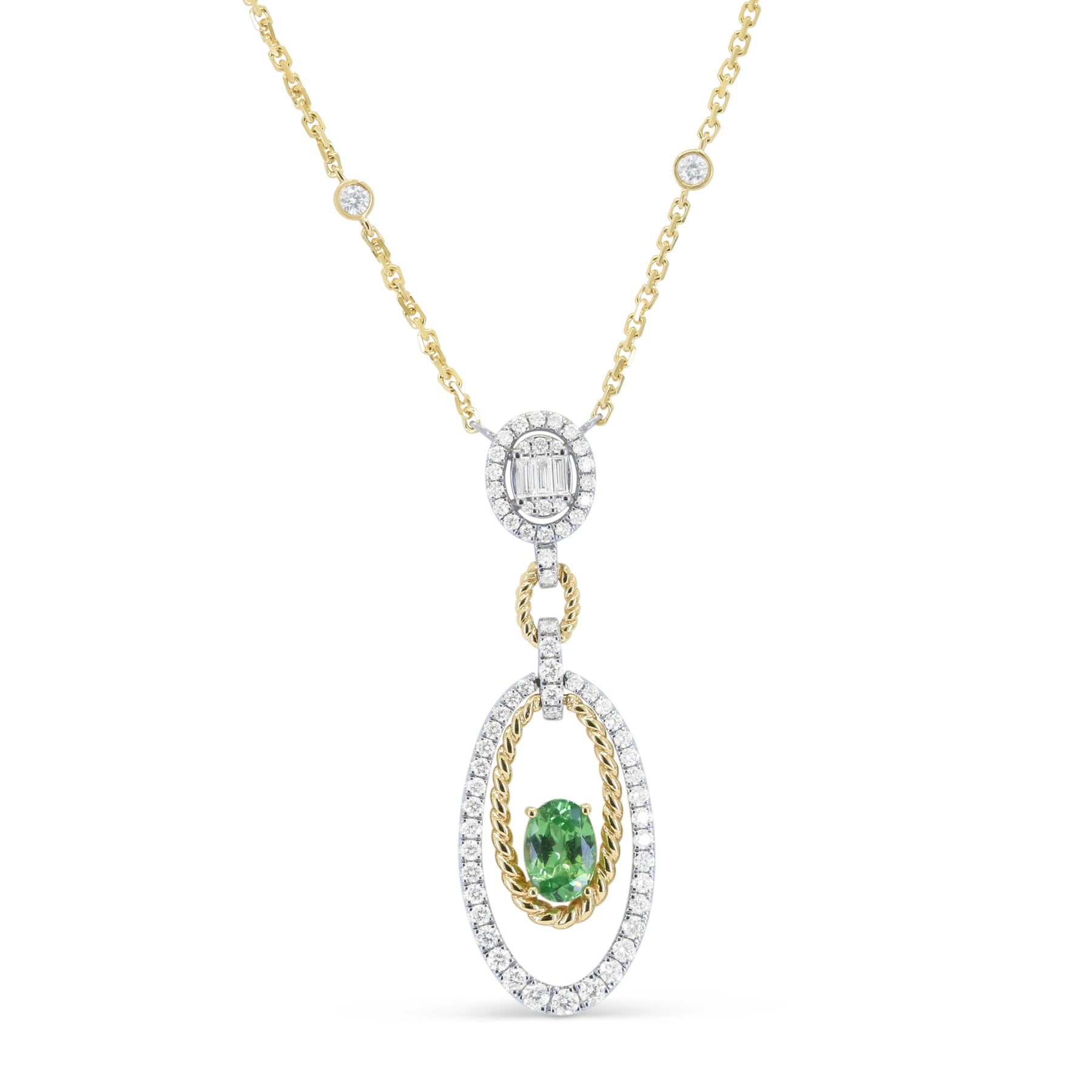 Beautiful Hand Crafted 14K Two Tone Gold 5X7MM Tsavorite And Diamond Arianna Collection Necklace