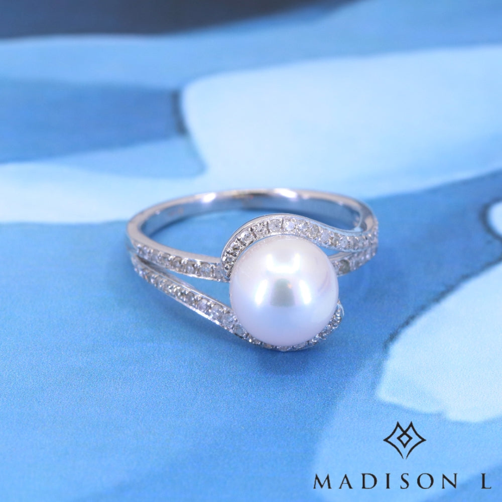 Beautiful Hand Crafted 14K White Gold  Pearl And Diamond Essentials Collection Ring