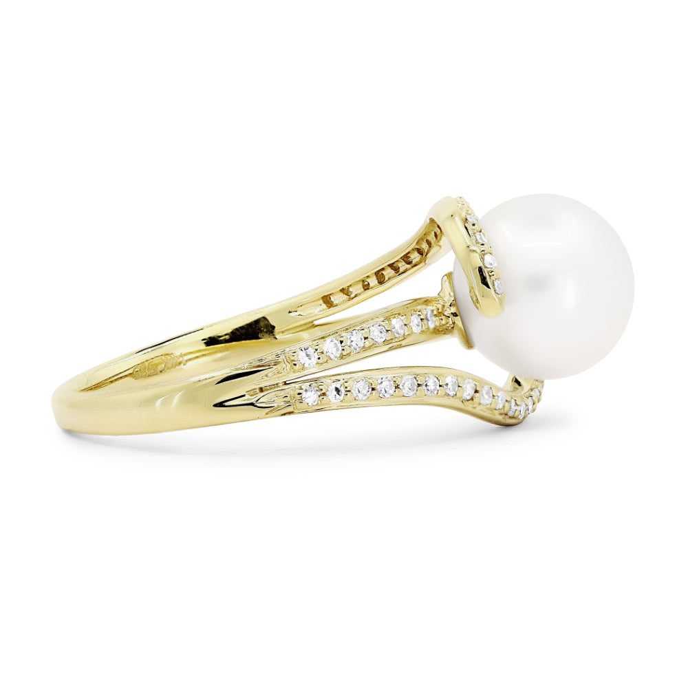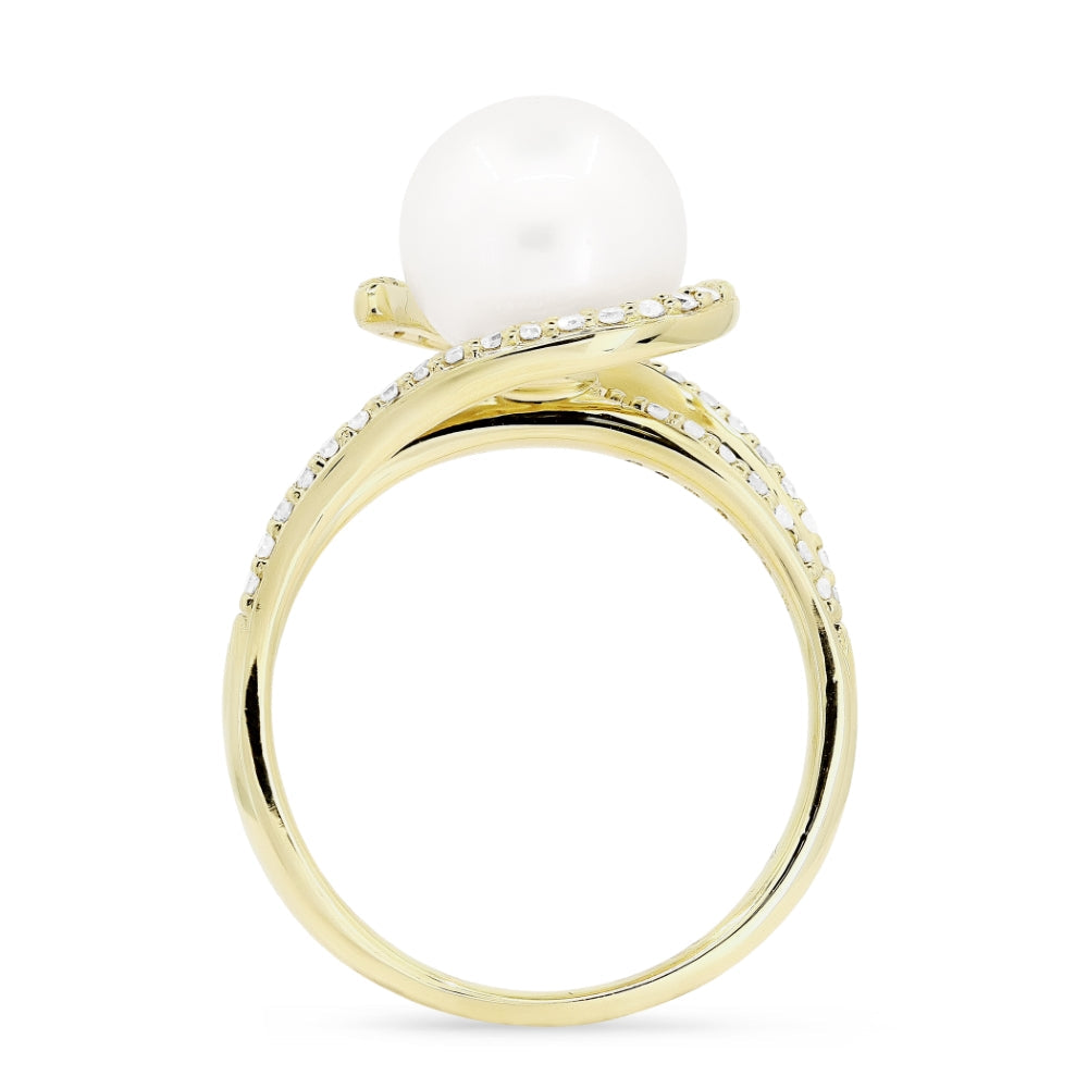Beautiful Hand Crafted 14K Yellow Gold  Pearl And Diamond Essentials Collection Ring