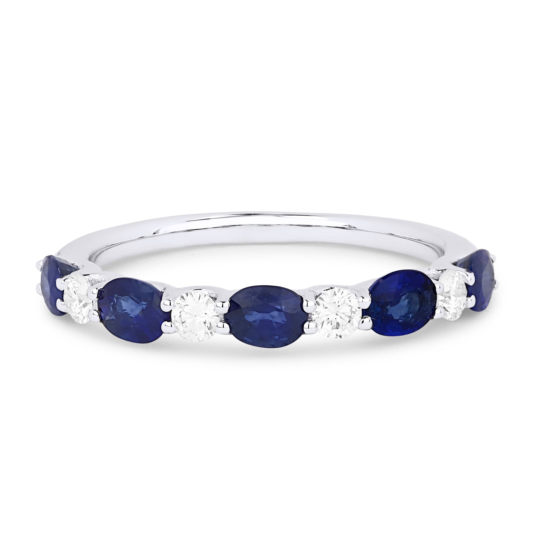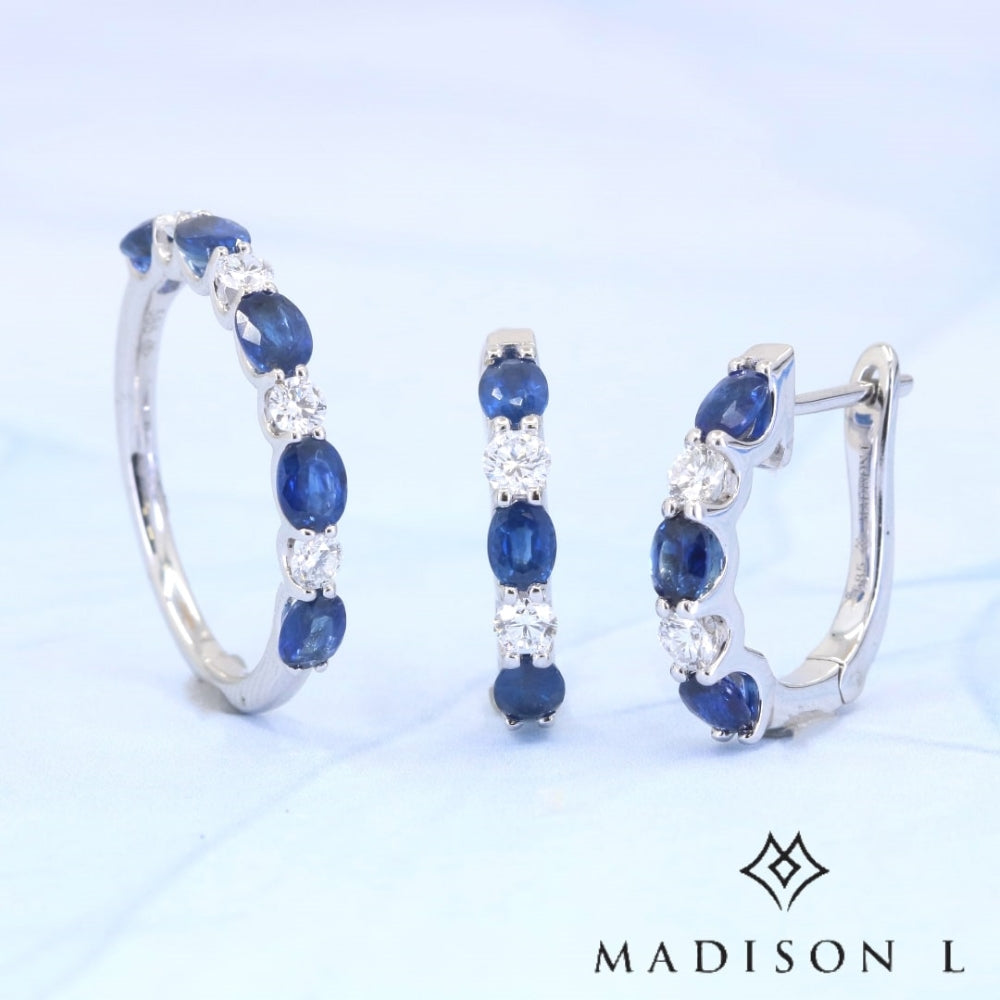 Beautiful Hand Crafted 14K White Gold 3X4MM Sapphire And Diamond Arianna Collection Ring