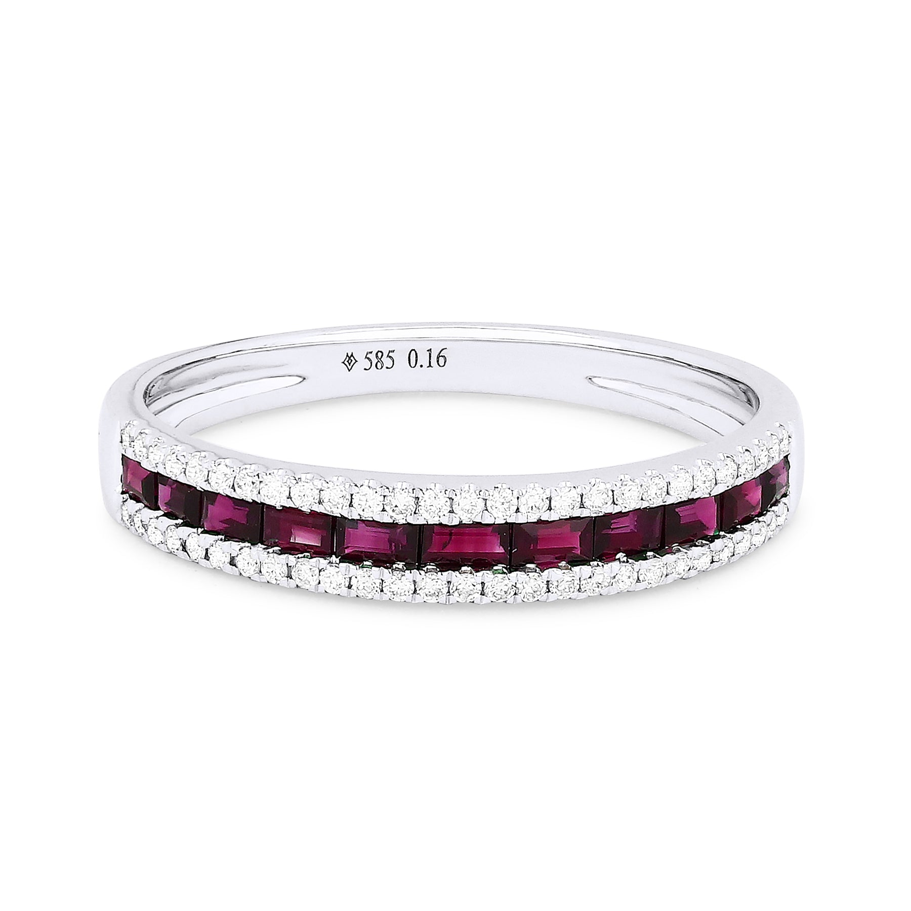Beautiful Hand Crafted 14K White Gold 2X2MM Ruby And Diamond Arianna Collection Ring
