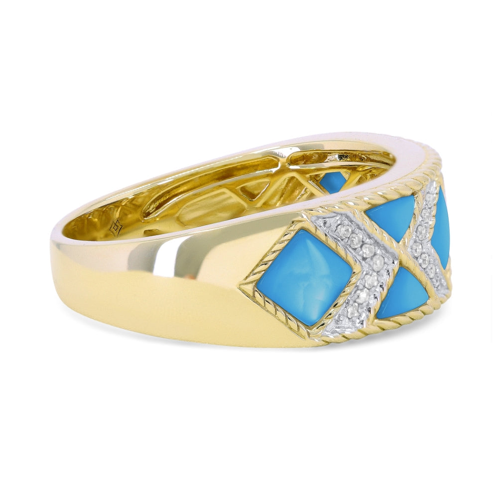 Beautiful Hand Crafted 14K Yellow Gold  Turquoise And Diamond Milano Collection Ring