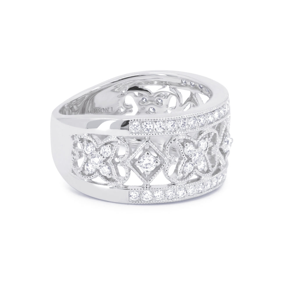 Beautiful Hand Crafted 14K White Gold White Diamond Milano Collection Ring