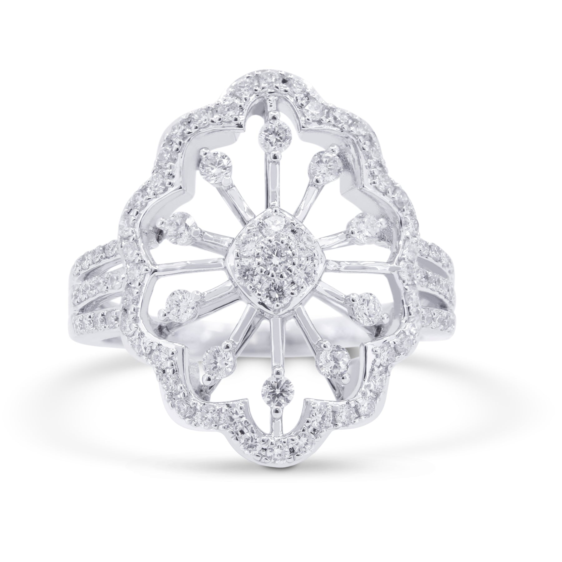 Beautiful Hand Crafted 14K White Gold White Diamond Milano Collection Ring