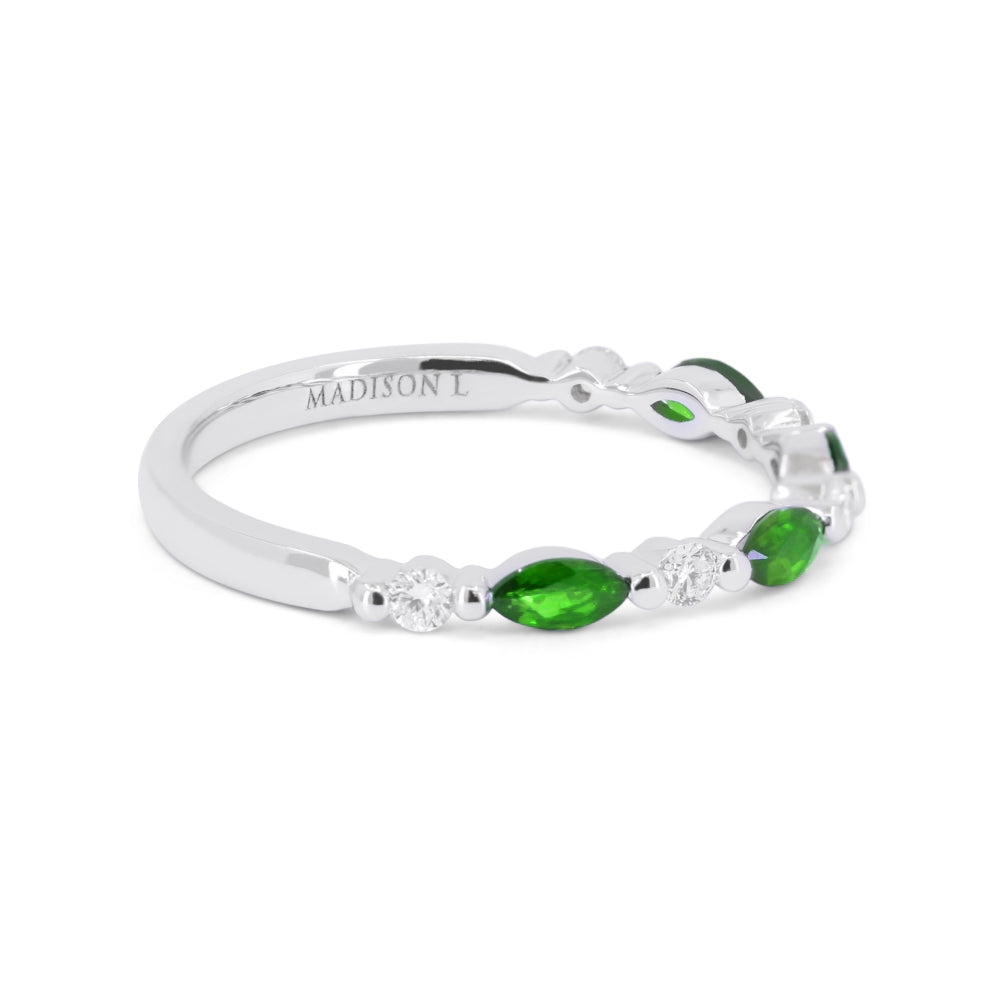 Beautiful Hand Crafted 14K White Gold 4X2MM Emerald And Diamond Arianna Collection Ring