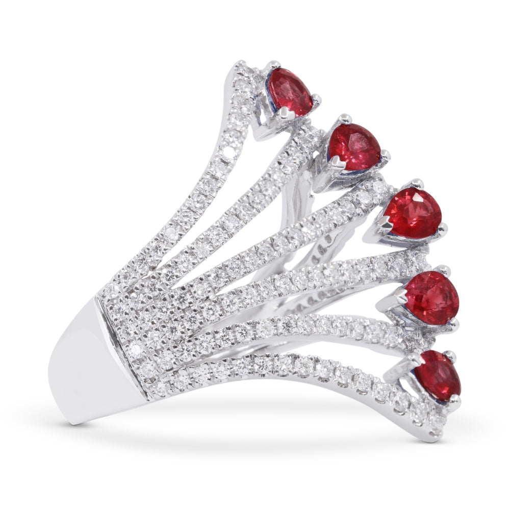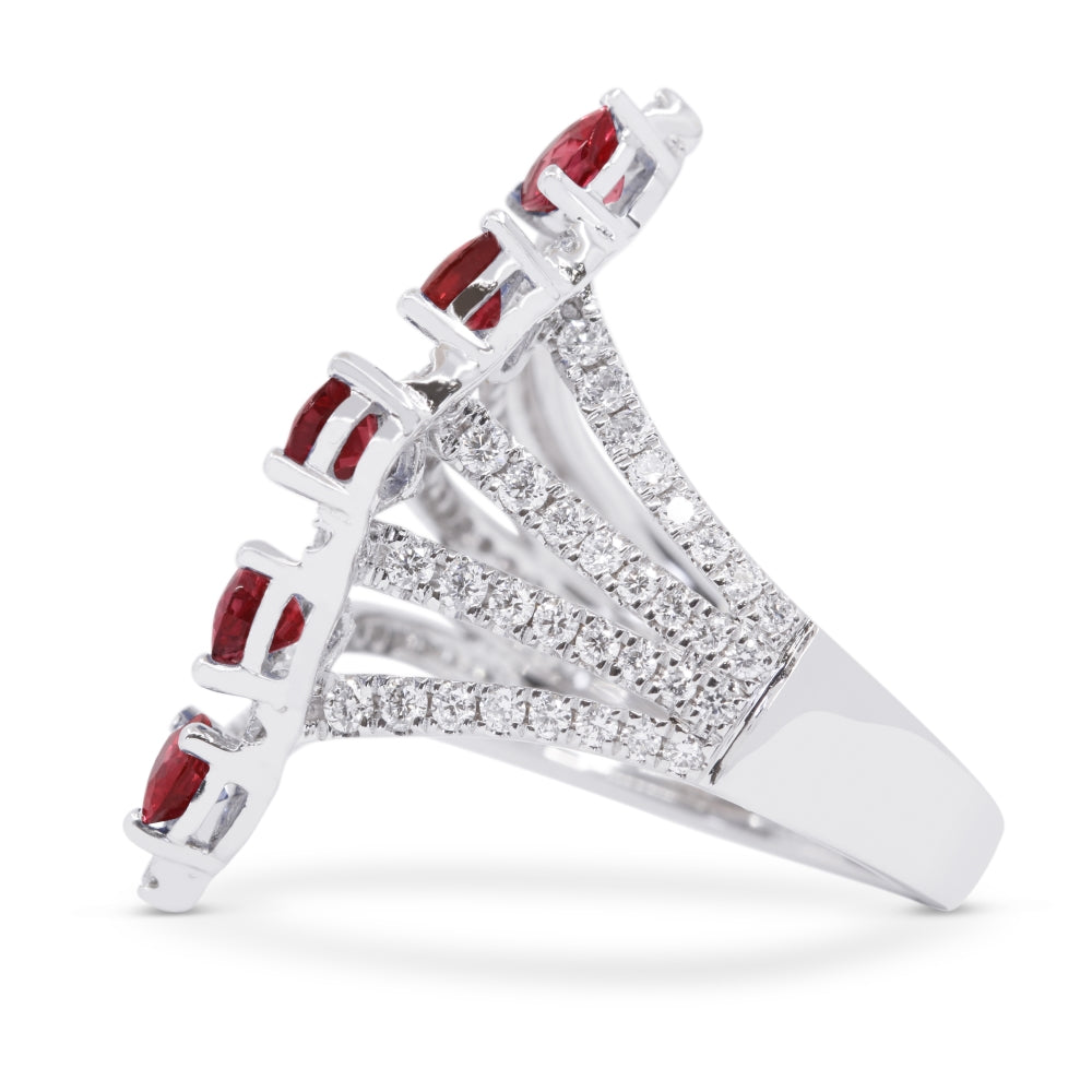 Beautiful Hand Crafted 14K White Gold  Ruby And Diamond Arianna Collection Ring