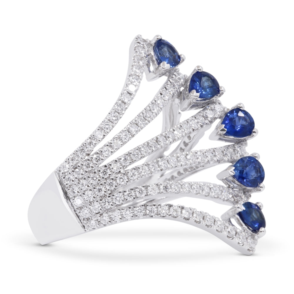 Beautiful Hand Crafted 14K White Gold  Sapphire And Diamond Arianna Collection Ring