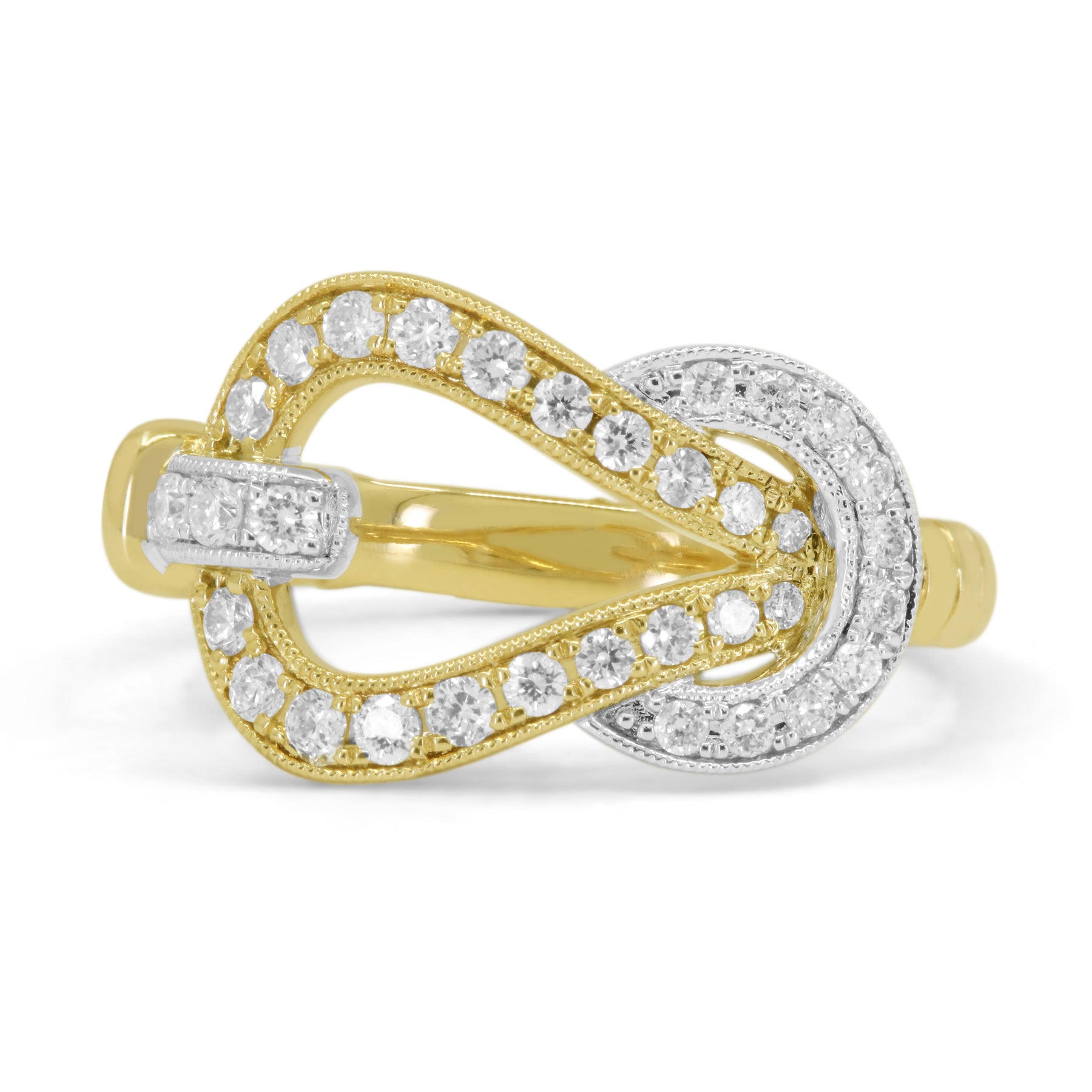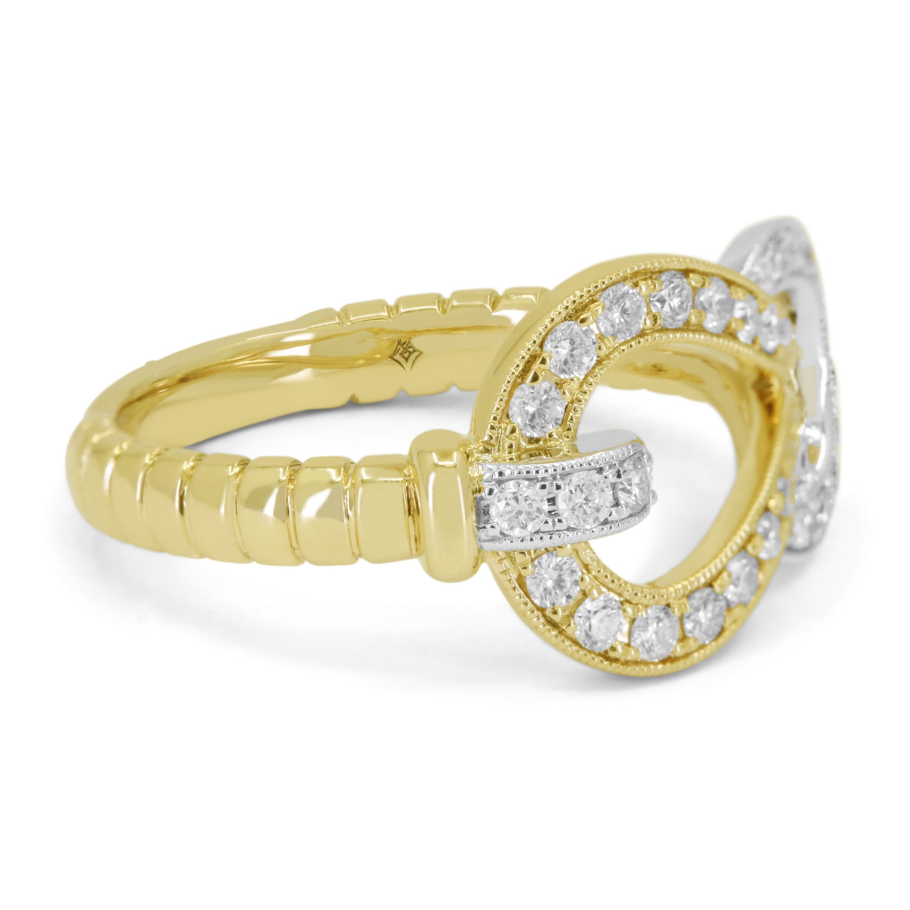 Beautiful Hand Crafted 14K Two Tone Gold White Diamond Milano Collection Ring