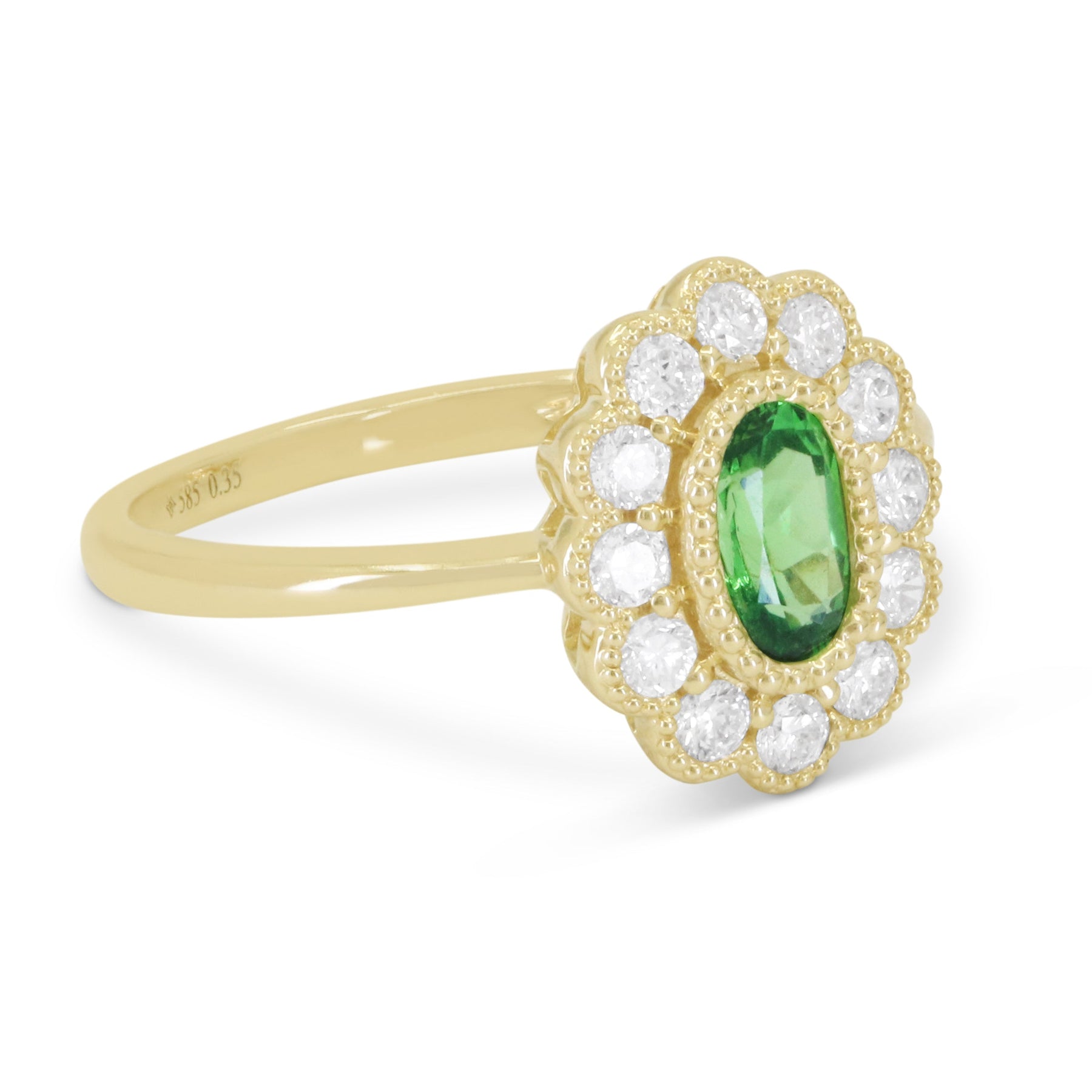 Beautiful Hand Crafted 14K Yellow Gold  Tsavorite And Diamond Arianna Collection Ring