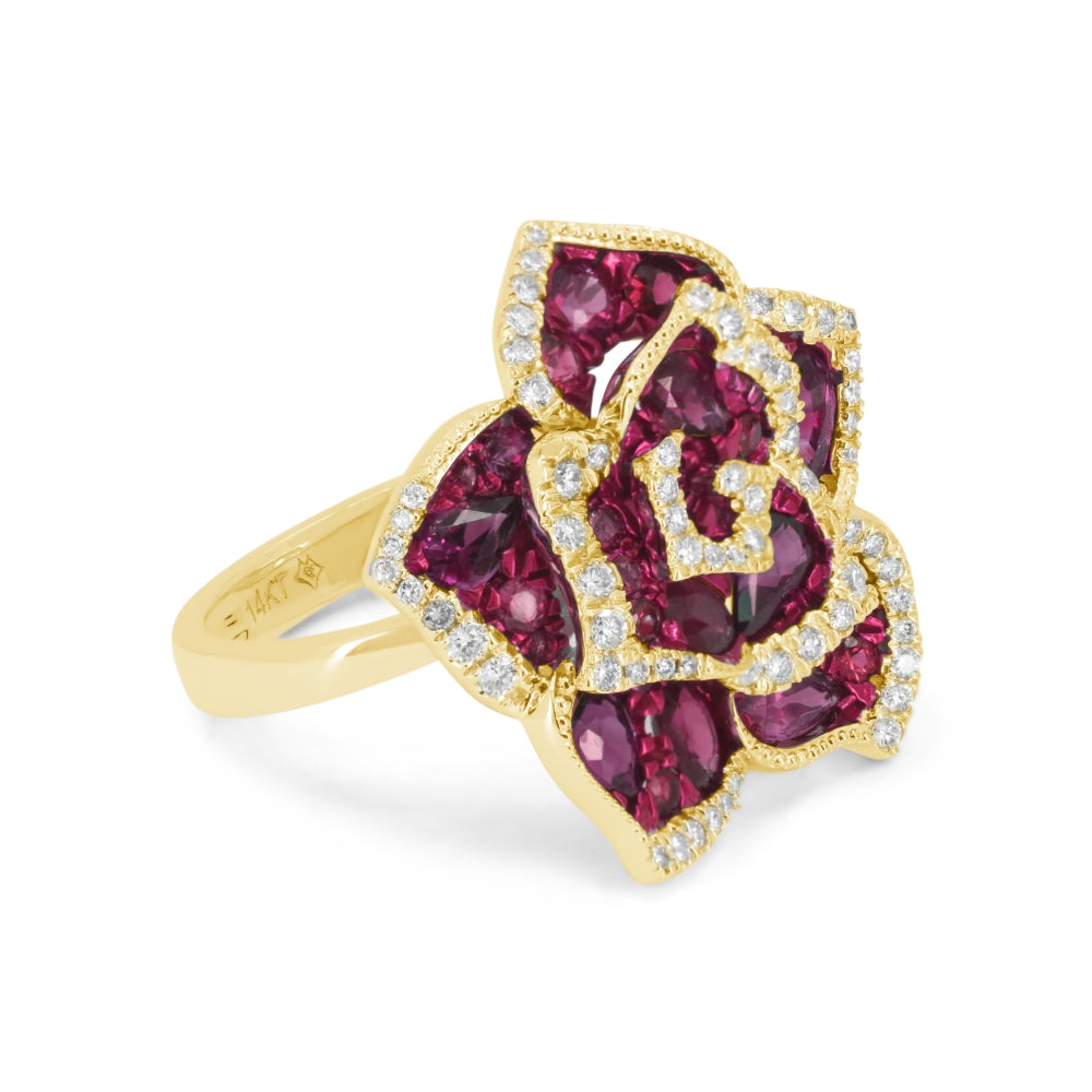Beautiful Hand Crafted 14K Rose Gold  Ruby And Diamond Arianna Collection Ring